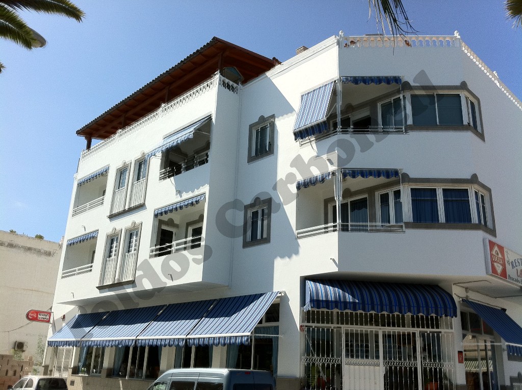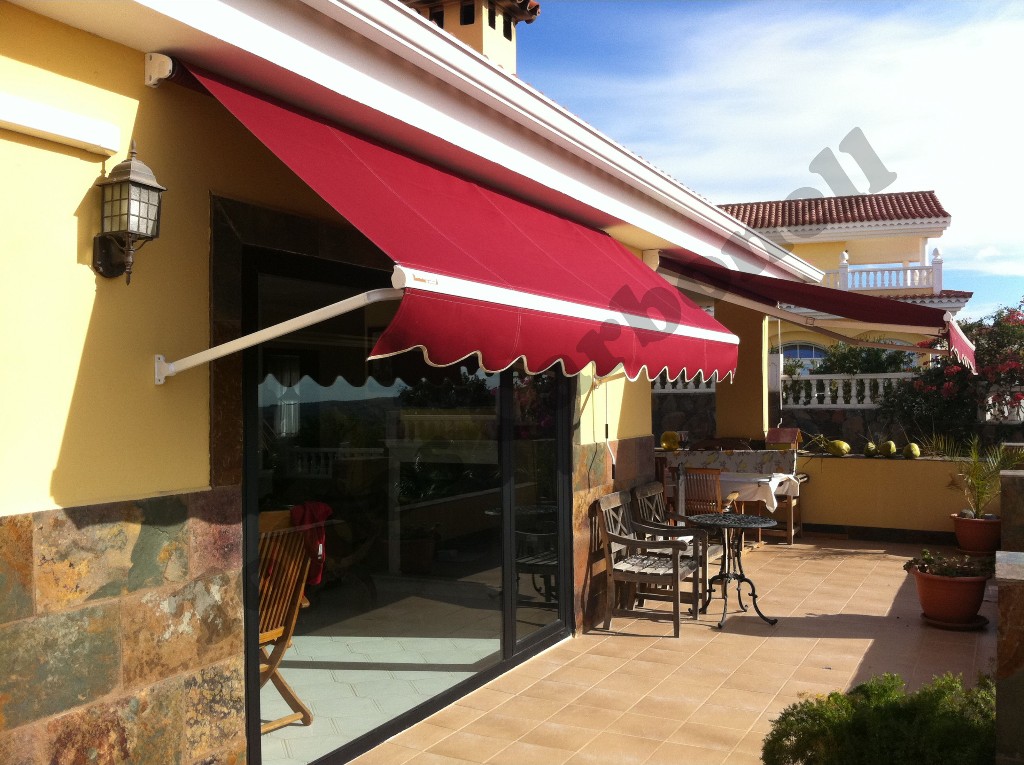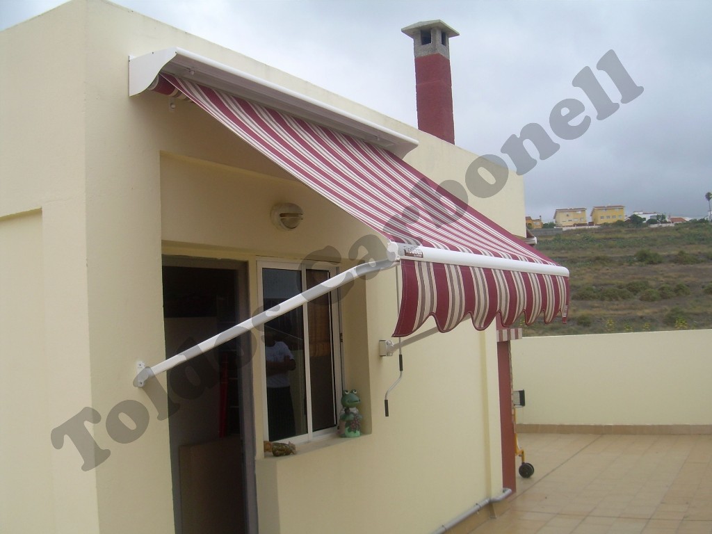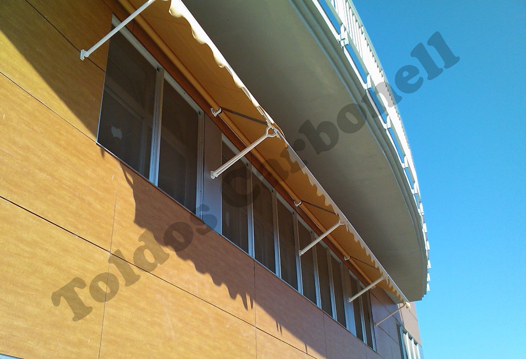 El sistema Rodhas con brazo punto recto conlleva el abatimiento frontal de los brazos del toldo con total independencia de los soportes superiores del tubo de enrolle de la lona. Es un sistema muy tradicional donde nuestra oferta presenta dos opciones de brazos según necesidad y dimensiones del toldo: sin tensión   y con tensión en el brazo mediante un muelle interno, El rango de apertura puede llegar a los 180º.
